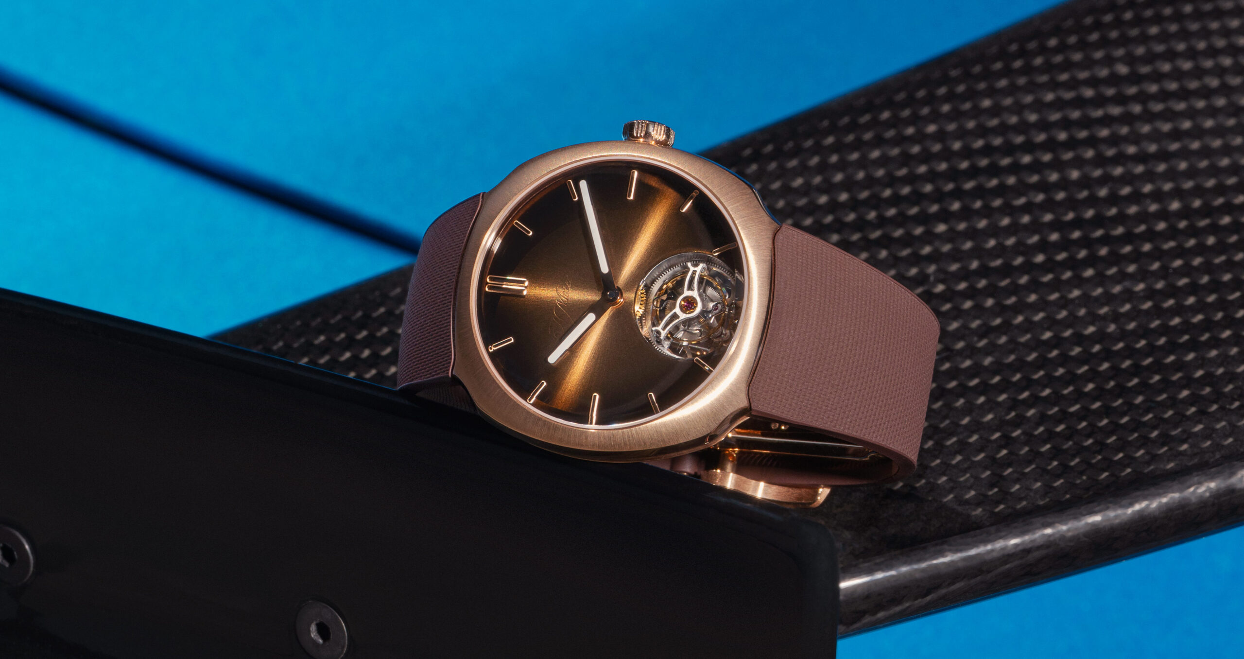 Entdecken Sie die Streamliner Tourbillon Pierre Gasly, die gemeinsam mit dem F1-Individualisten entwickelt wurde. Pierre gestaltete in enger Zusammenarbeit mit unseren Uhrmachern jedes Detail, von der Wahl des Uhrwerks bis hin zur Auswahl (und Benennung) des tiefbraunen Chocolate Fumé-Zifferblatts. Die Uhr präsentiert sich in einem Streamliner-Gehäuse aus Rotgold 5N und ist auf 100 Exemplare limitiert. Auf Pierres ausdrücklichen Wunsch wurde sie mit einem fliegenden Minutentourbillon ausgestattet, angetrieben vom Automatikwerk HMC 805 mit hauseigener Doppelspirale.