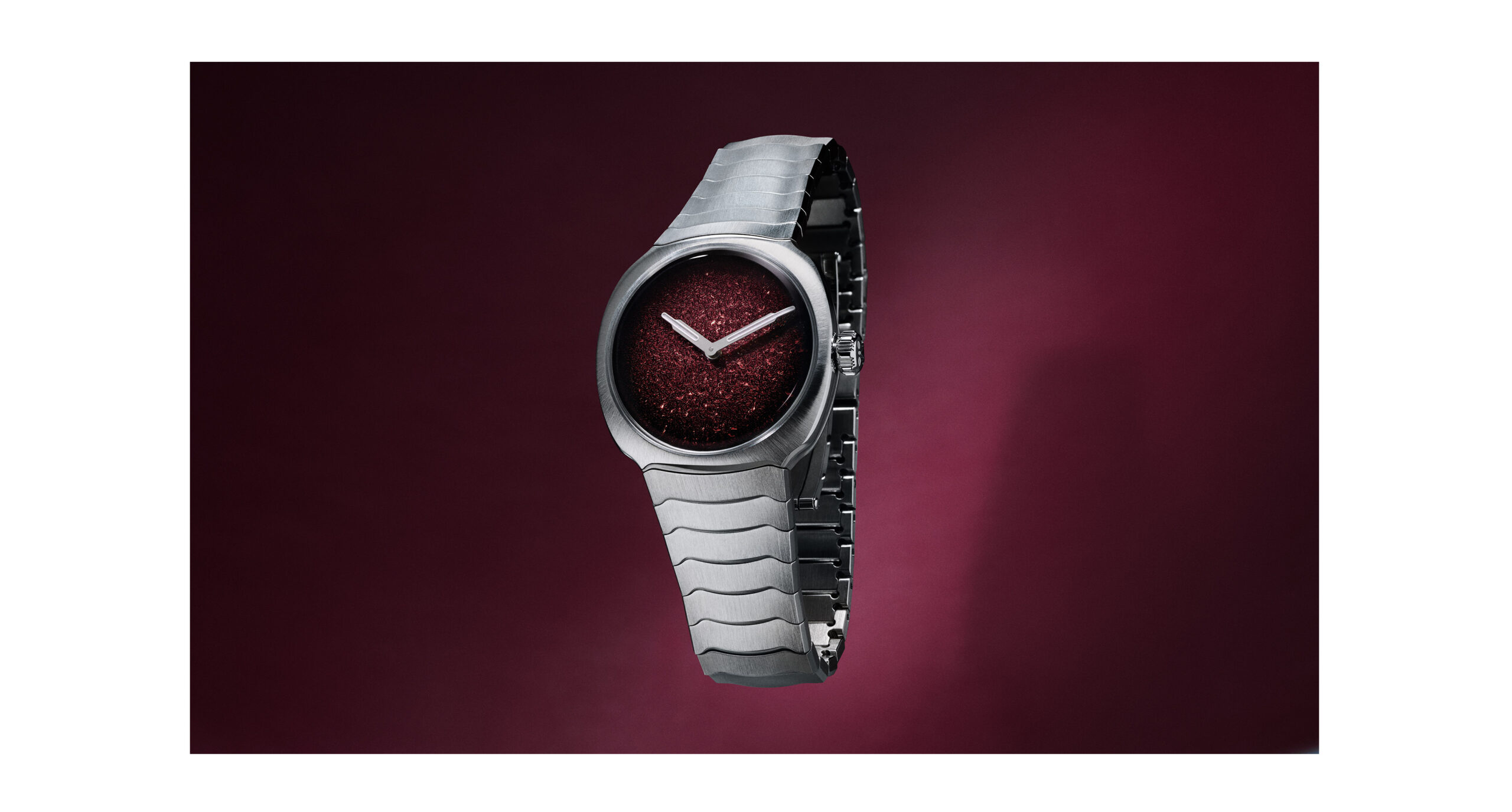 Das frosted Fumé-Zifferblatt erzeugt ein faszinierendes Spiel aus wechselnden Reflexionen und offenbart mit jedem Lichteinfall neue Facetten.